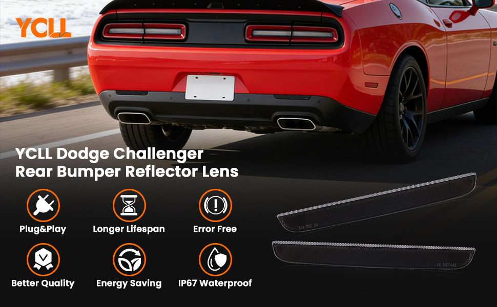 【Fitment】: Smoked Lens Rear Reflector with Dodge Challenger 2015-2024, Complete set of black-out dark smoke lens Rear Bumper Reflex Assemblies: features a sleek, bold & aggressive design that transforms your car's ordinary rear bumper into a standout look. Replace OEM part number: 68211188, 68211189.