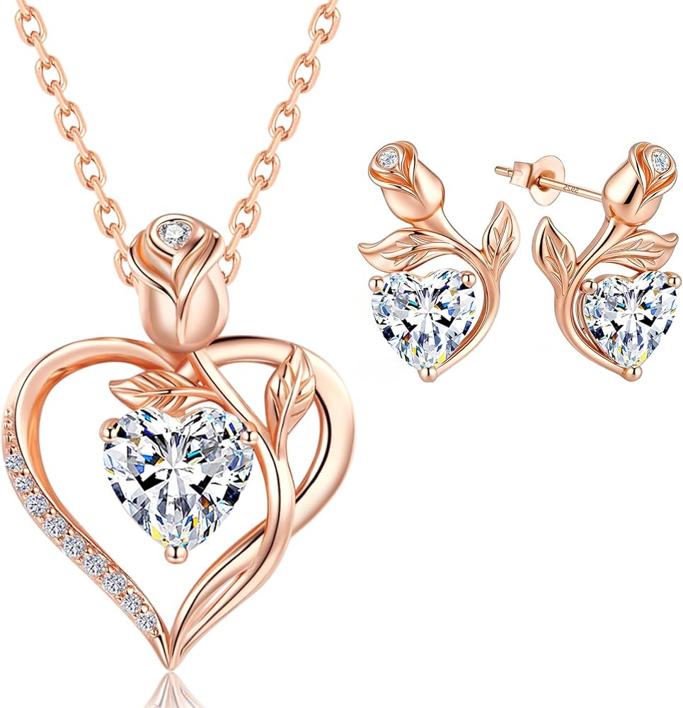 Rose Heart Necklace and Earrings Set Moissanite/Lab-Grown Sapphire/Ruby Options S925 Sterling Silver 18K White Gold Plated Engraved "I LOVE YOU" Perfect Engagement Gift for Girlfriend Wife(Necklace 1.2CT / Earrings 0.8CT) in Kuwait