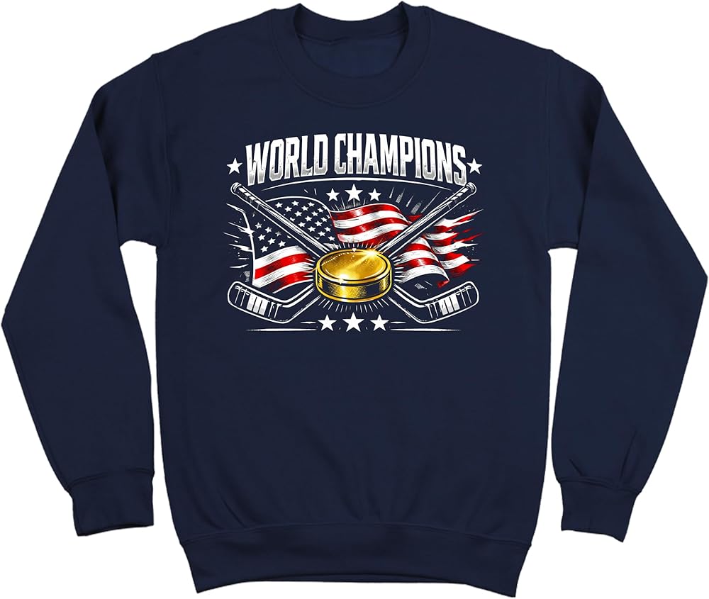 USA World Champions Fleece – Patriotic Hockey Sweatshirt – Gold Puck American Flag Graphic Top - Sweatshirt in Kuwait