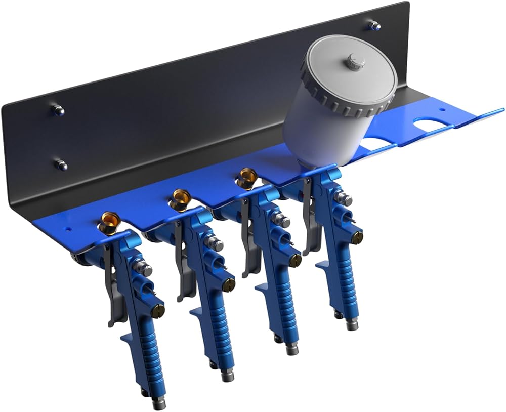 【Heavy-Duty & Scratch-Proof 】 Thick powder-coated steel for industrial sturdiness. Blue rubberized coating protects HVLP, gravity feed, and standard spray guns from scratches.