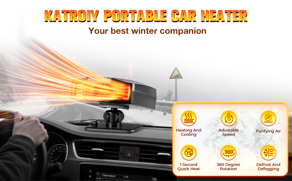 【High Power & Fast Heating】 Equipped with an upgraded 12V car heater and increased power of 150W, our product delivers enhanced air temperature and rapid defogging and defrosting capabilities. By improving driving vision safety, it becomes an indispensable assistant during winter months, ensuring a clear and unobstructed view of the road ahead.