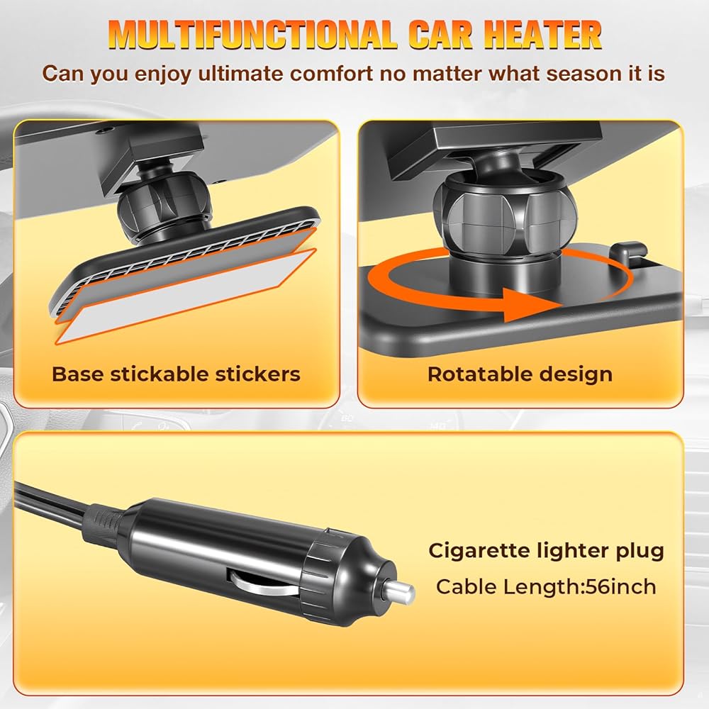 【Innovative Safety Design】 Our car heaters are designed with your safety and convenience in mind. Featuring a cigarette lighter plug design and built-in fuse, they offer automatic power-off protection and anti-voltage capabilities, ensuring safe usage. The 360° rotatable bracket allows you to easily fix the heater wherever you suitable, and adjust it to the perfect angle for optimal heating or cooling performance.