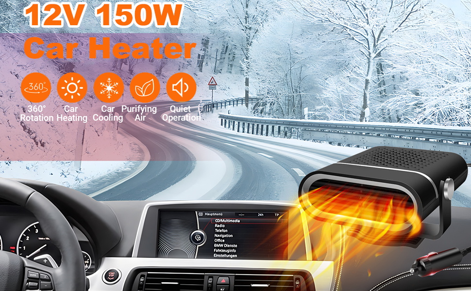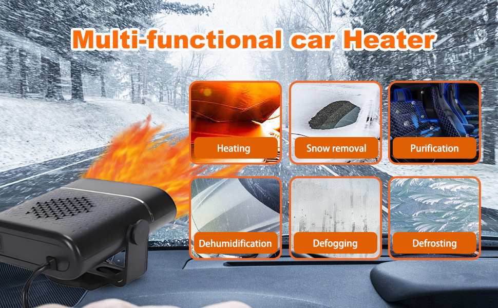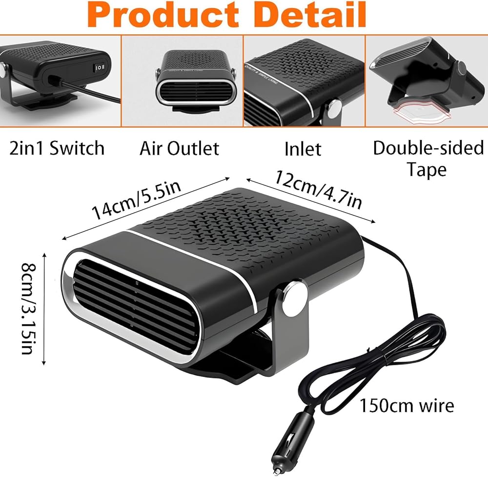 【High Power & Fast Heating】 Our 12v heater adopts antioxidant alloy wire,150W high power rapid heating, effectively removes frost and water mist on the windshield, providing you with a clear view of the road, and at the same time increase the temperature inside the car, so that you can enjoy a safe and warm driving experience in the cold winter