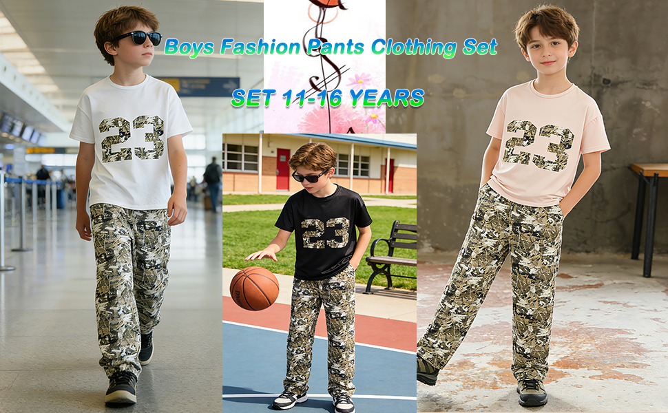 Thoughtful Details, Premium Quality: The set includes one crew neck top and one pair of pants, designed for boys aged 11 - 16. It adopts a simple edge - locking design for enhanced wear resistance and wash durability. The camouflage print remains clear and does not peel off, balancing great looks with long - lasting use.