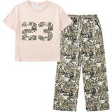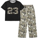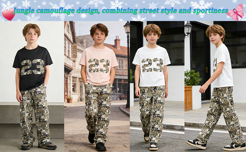 Trendy Camouflage Color - Block Design, Maximum Eye - Catching Appeal: The top features a solid - color base with a camouflage digital "23" print, paired with jungle camouflage pants. This color - block design combines street style and sporty vibes, creating a personalized look effortlessly. It stands out perfectly for daily outings and casual occasions.