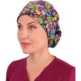 DESIGN: Riley Comfort Scrub Bouffant Style Working Caps have flat fronts and are roomy in back. Elastic Band and Cord Lock Closure - Just pull to adjust the fit and tuck up the elastic band when done. They are great for short to medium length hair. Great for keeping your hair back during delicate procedures. You can concentrate on your own performance at work and trust the performance of your caps from Sparkling Earth Headwear & Accessories.