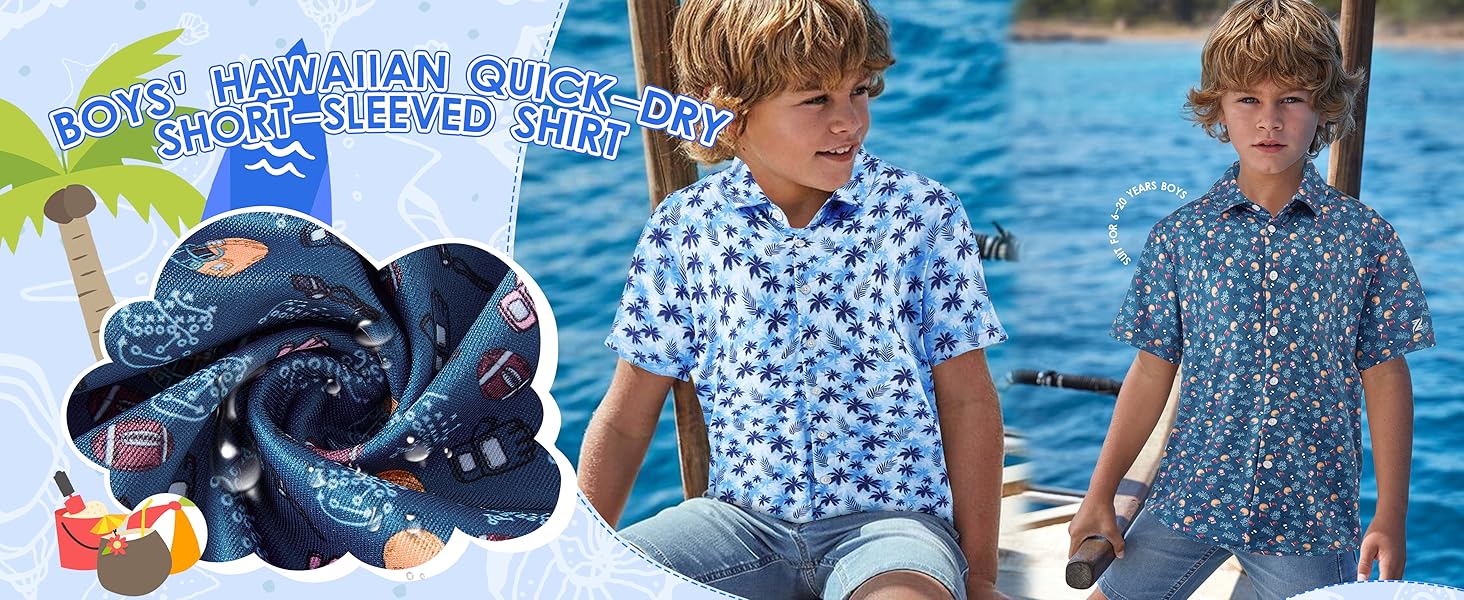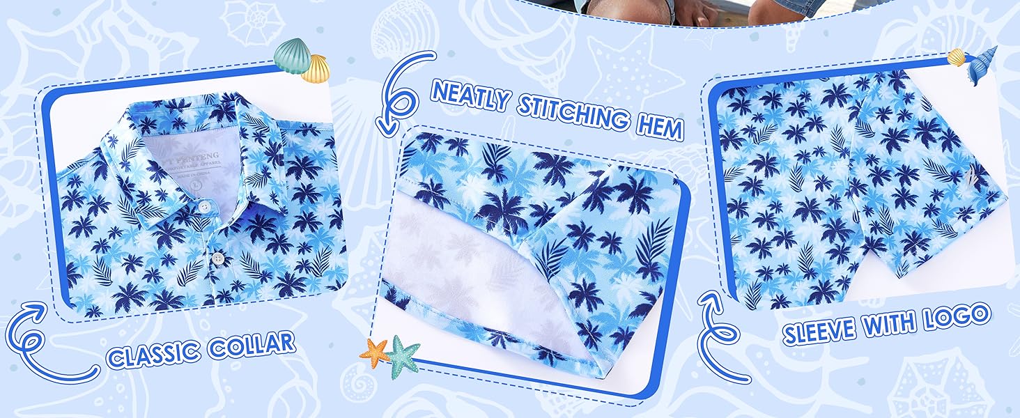 HIGH QUALITY BOY'S SHIRTS: This casual shirts are made of 92% polyester and 8% spandex, soft, breathable, quick-dry, lightweight and durable, it's suitable for summer days, making you cool and comfortable all day long. Stitching neatly and exquisite hawaiianmanship, you are assured to stay comfortable for all day long.