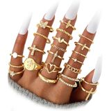 Versatile Styles: This ring set includes 21 exquisite rings in a variety of styles, from delicate and refined to bold and chunky. It incorporates popular elements such as crosses, hearts, twists, openwork designs, and rhinestones, allowing for endless stacking combinations. Wear a fresh and unique stacked look every day, avoiding repetition.