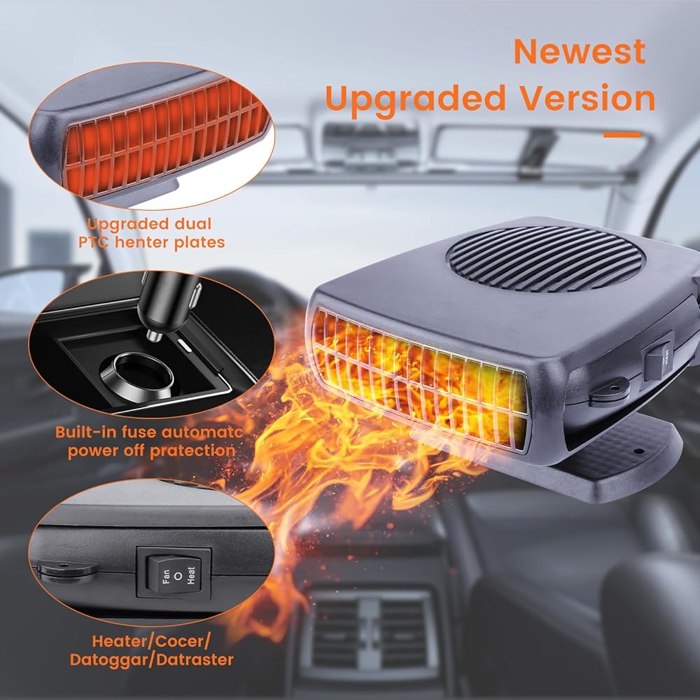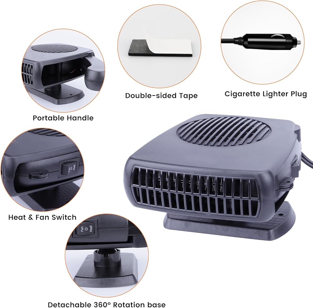 【High Efficient and Multifunction】 Widely used in cars, SUVs, cabs, jeeps, trucks and other 12V cars to effectively keep the windshield clear and prevent fog or frost from blurring vision. Portable and efficient, it can also be used as a warming device when camping or traveling.