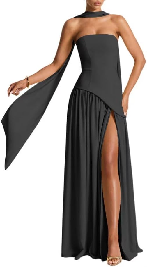 Features: Satin Scarf Bridesmaid Dresses for Women with Slit 2026, Square Neck Pleated Formal Party Evening Gowns, Strapless A Line Ball Gowns for Women, Asymmetrical Drop Waist Evening Party Dresses. This Spaghetti Straps Prom Dresses Features Pleated, Asymmetrical Drop Waist , A line, Floor Length, Square Neck, Lace up Back, Plus Size, Built-in Bra. Fully Lined. The Sexy Sleeveelss prom dress is the best choice for your different occasions.