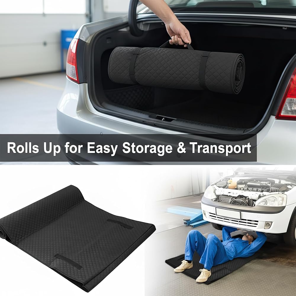 Lightweight and Highly Portable with Compact Roll-Up Design – Weighing just a few pounds and measuring 58"x19", this magical rolling creeper mat can be easily rolled and stored in your car trunk, under a seat, or in a tight storage space. Its effortless portability means you can take it anywhere—whether you're on a cross-country road trip, performing quick repairs outdoors, or working in a crowded garage. Carry it with one hand and deploy it in seconds whenever you need a clean, comfortable surface to work on