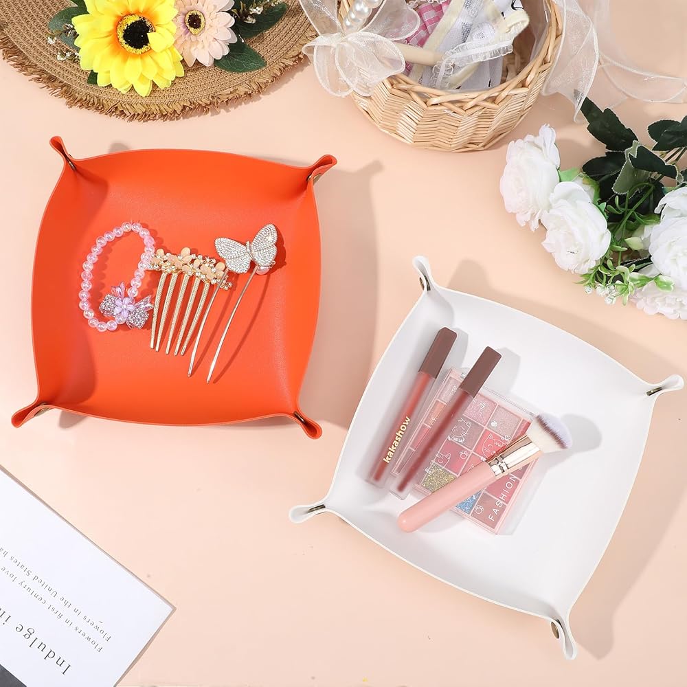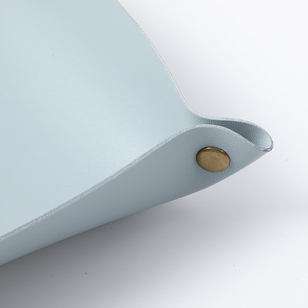This leather jewelry tray is made of high-quality PU leather with smooth edges. It is scratch-resistant, waterproof, and easy to clean. The tray features a unique snap-on design at the four corners, making it easy to install and remove. When not in use, it is easy to store and saves space.