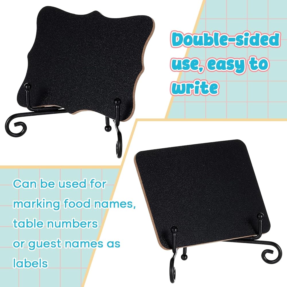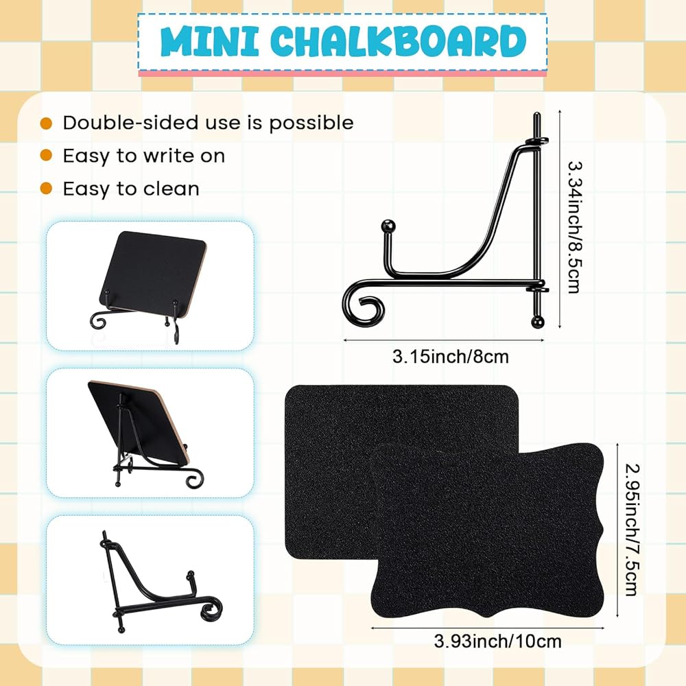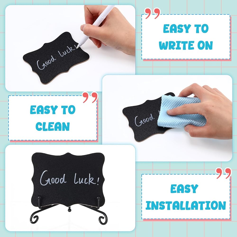 Our mini chalkboards are made of smooth, quality materials for long term use. They come with a detachable stand that securely attaches to any surface and folds flat for easy storage, enhancing portability for everyday use.