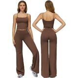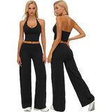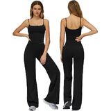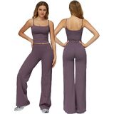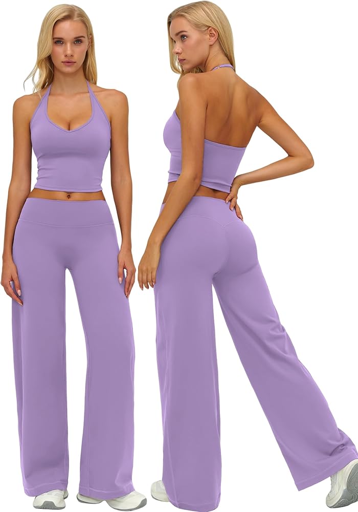 Two Piece Workout Sets for Women: black womens workout sets is made of 78% Polyamide + 22% Elastane, breathable, buttery soft, four way stretchy, two piece athletic outfits for women workout crop Tank tops, butt lifting athletic Straight Wide Leg leggings, dark purple 2 piece workout sets for women, pilates workout sets for women leggings, matching workout sets for women, wide leg yoga pants yoga sets for women, pink pilates sets for women, giving comfortable stretch and freedom of movement,