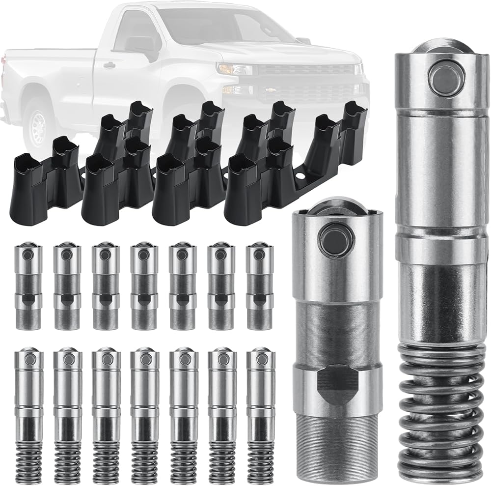 16Pcs Active Fuel Management Valve Hydraulic Roller Lifters and Guide Trays Compatible with Chevy GMC Cadillac Buick Pontiac 4.3L 5.3L 6.0L 6.2L OE#12569256 12645725 12680871