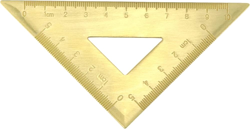 HEVSTIL Triangle Ruler, 45/90 Degrees, Brass & Copper Metal, Thicken Ruler for Drafting & Drawing