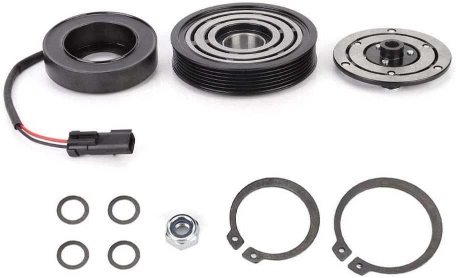 COOLTech A/C Compressor Clutch Kits include the compressor clutch, which engages and disengages the compressor when the A/C is switched ON and Off, and other related components. The compressor clutch kit consists of a pulley with the bearing already pressed in, a pressure plate, and electromagnetic coil . These kits are manufactured to fit your specific vehicle (only fits original compressors, does not fit aftermartket compressors), providing the same performance, durability, and service life you expect from a high quality aftermarket part. Includes: Pulley + Bearing + Coil + Front Plate Hub Shims + Retaining clips and Center bolt also included