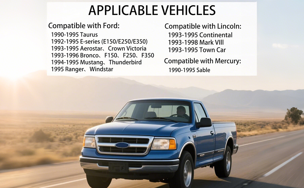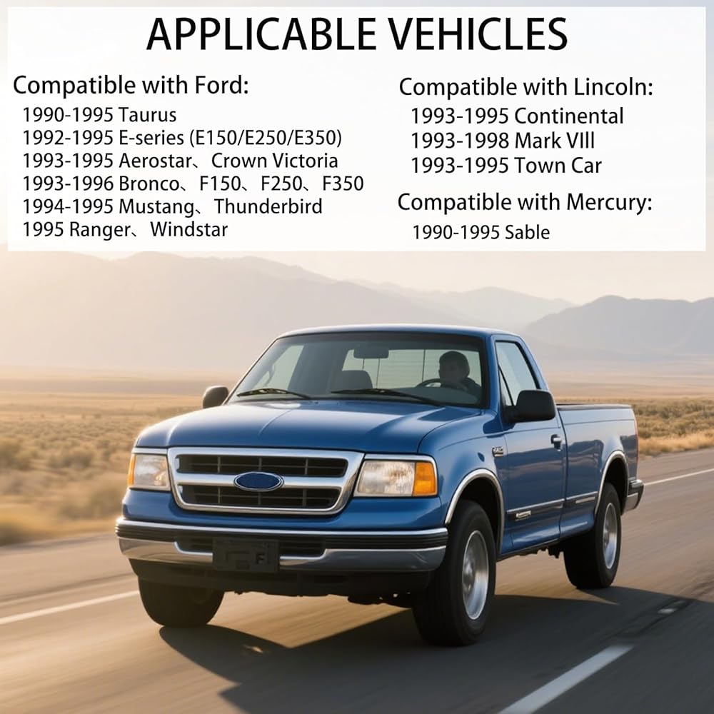 【Applicable Vehicle 1】Compatible with 1993-1996 Ford F-150, 1993-1996 Ford F-250, 1993-1996 Ford F-350, 1992-1995 Ford E-150 Econoline, 1992-1995 Ford E-150 Econoline Club Wagon, 1992-1995 Ford E-250 Econoline, 1992-1995 Ford E-350 Econoline, 1995 Ford Explorer, 1995 Ford Ranger, 1995 Ford Windstar, 1994-1995 Ford Mustang, 1990-1995 Ford Taurus, 1993-1995 Ford Aerostar, 1993-1996 Ford Bronco, 1993-1995 Ford Crown Victoria.