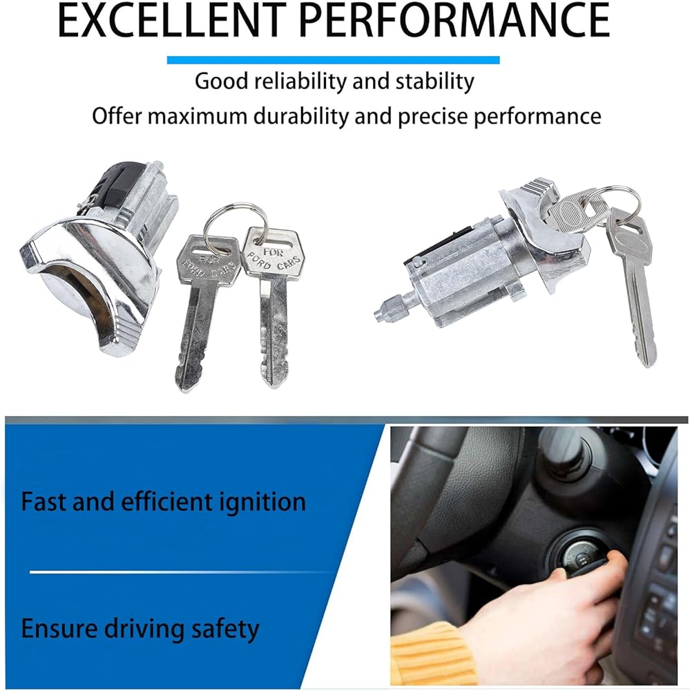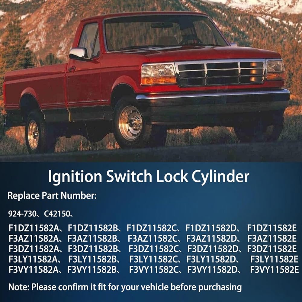 Ignition Lock Cylinder with Keys Compatible with 1992-1996 Ford Explorer/F150/F250/F350, 1993-1998 Lincoln Town Car Continental, 1990-1995 Mercury Sable Replace# 924-730