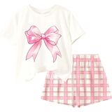 Tween Girls 6-12 Years Summer 2-Piece Outfit Set - Heart Decor Short-Sleeve Top & Leopard Print Shorts Casual Clothing Set