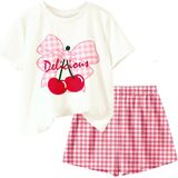 Cute Heart & Leopard Design: The short-sleeve top features charming double-heart decor, paired with stylish leopard print shorts—creating a playful, trendy look that fits girls' sweet taste.