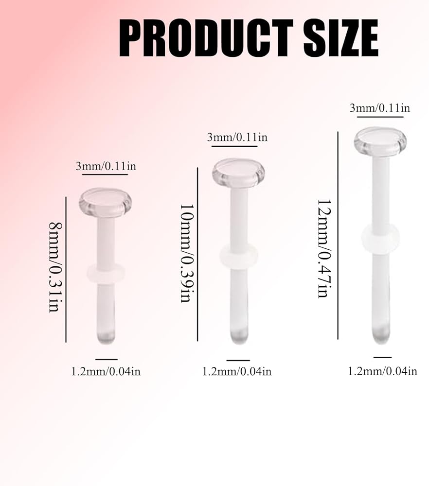 【Versatile Size Options】 This Multi‑Gauge Piercing Retainer Set provides flexible sizing to suit your needs, available in 8 mm, 10 mm, and 12 mm wearable lengths. Each piece includes 4 mm clear silicone O‑rings for a secure, slip‑proof fit. Designed to accommodate both fresh and healed piercings, they eliminate sizing guesswork for a proper, comfortable wear.