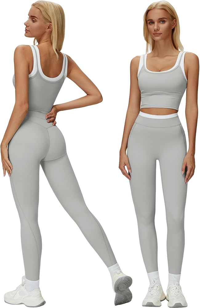 Two Piece Workout Sets for Women: color block womens workout sets is made of 78% Polyamide + 22% Elastane, breathable, moisture wicking, buttery soft, four way stretchy, two piece athletic outfits for women workout crop Tank tops, butt lifting athletic leggings, color block 2 piece workout sets for women, workout sets for women, matching workout sets for women, yoga sets for women, giving comfortable stretch and freedom of movement,