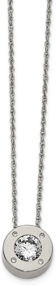 Stainless Steel Polished CZ Cubic Zirconia April Simulated Birthstone Necklace Chain - with Secure Lobster Lock Clasp