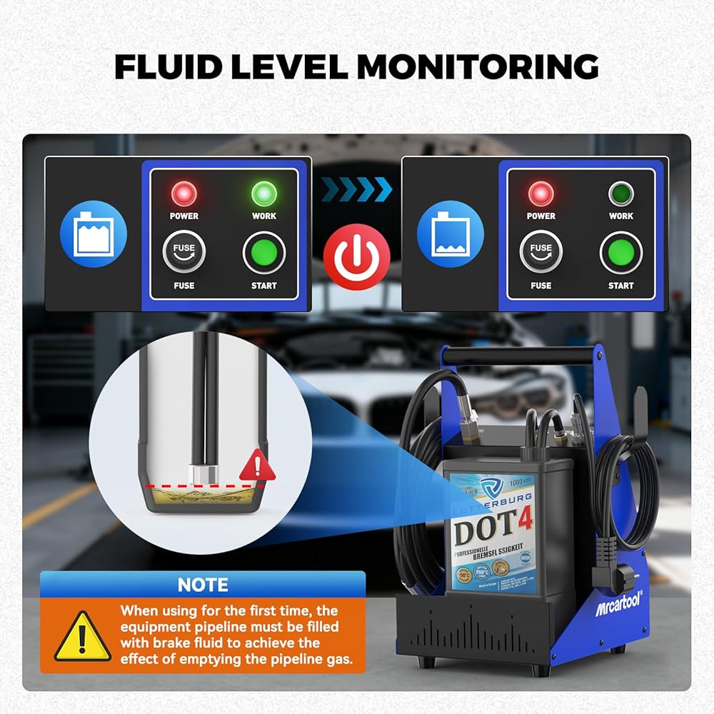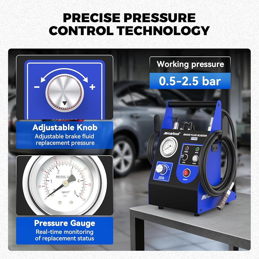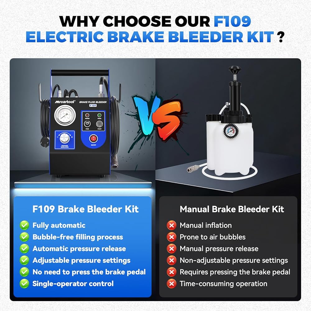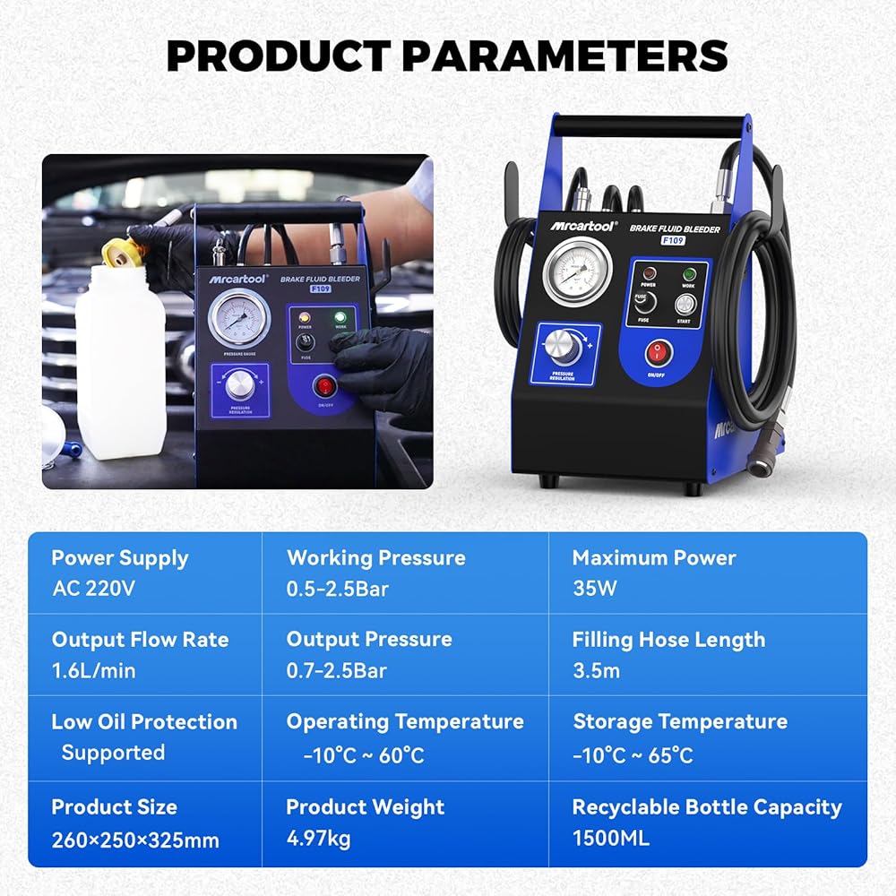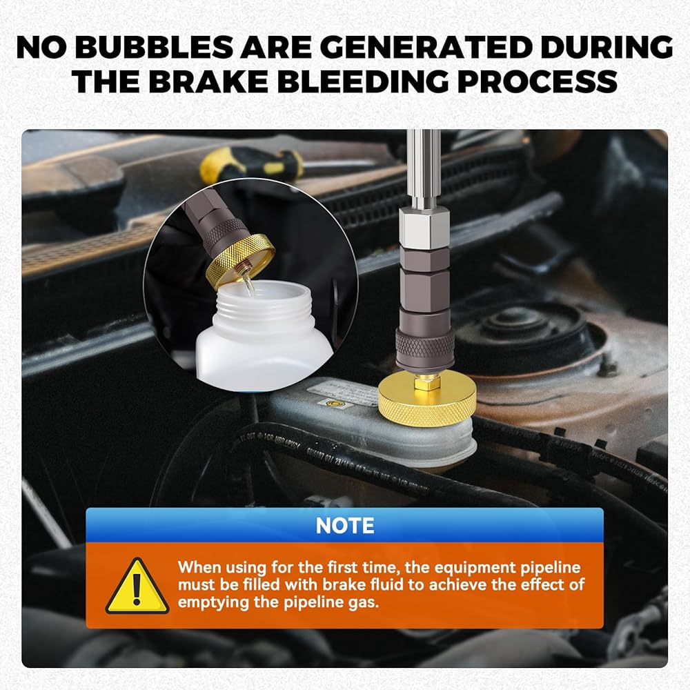 【EASY ENOUGH FOR ANYONE TO USE】Achieve professional results in minutes. Simply plug it in, adjust the size, and lock it in place. No special skills or tools required, making brake bleeding and fluid replacement a simple, one-person job.