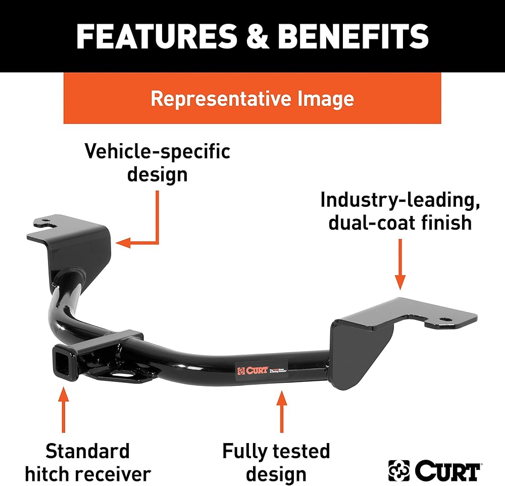 Whatever the next checkpoint is on your adventure -- whether it's getting your bike on the trail before sunrise or making it to the campground before dark -- CURT class 2 hitches let you Bring It with confidence. These receiver hitches are made to handle most light-duty towing applications and offer a custom fit for your vehicle. Typically used on full-size cars, crossovers, compact SUVs, minivans or even compact pickup trucks, a CURT class 2 trailer hitch complements the design of smaller vehicles. This particular class 2 hitch is made to be a custom hitch for certain years of the Toyota Venza (to verify vehicle compatibility, see application info). It offers a weight carrying capacity of 3,500 lbs. GTW and 350 lbs. TW. Class 2 trailer hitches can typically be used to tow a variety of lightweight trailers, such as a small utility trailer, small fishing boat trailer or popup camper (NOTE: Never exceed the lowest weight capacity of any towing component). They are also perfect for adding cargo space to your vehicle with a bike rack or cargo carrier. This class 2 hitch features a 1-1/4" receiver tube to accept a ball mount shank or other hitch-mounted accessory. For safety, it is tested in accordance with SAE J684. A custom trailer hitch design requires extra care, and as such, CURT class 2 hitches are engineered using real vehicles and hands-on research. We use high-strength steel, robotic welding and rigorous testing to produce hitches that are built to fit your lifestyle. To ensure that each hitch will be a reliable extension of your vehicle, we also finish our hitches in a co-curing of liquid A-coat and black powder coat, giving them long-lasting rust and wear resistance.