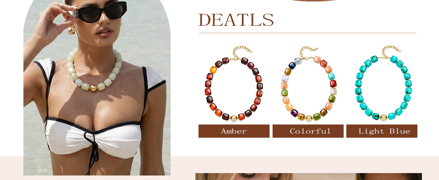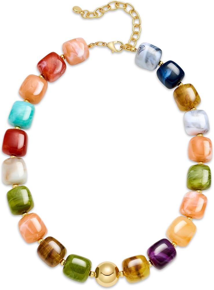 Beautiful Colors: This colorful necklace combines the exquisite hues of resin beads with warm gold-plated accents, creating a statement piece that exudes confidence and vintage charm.