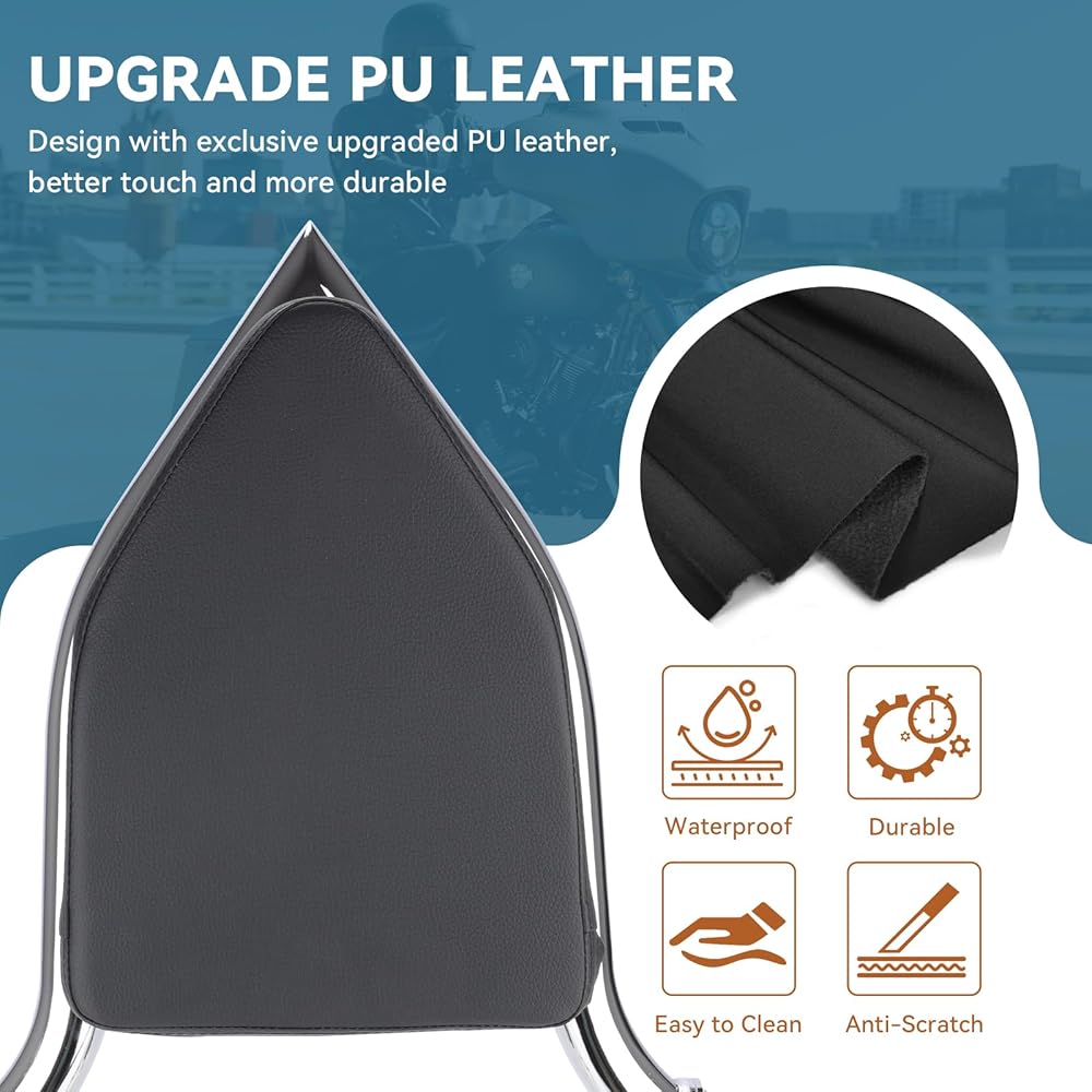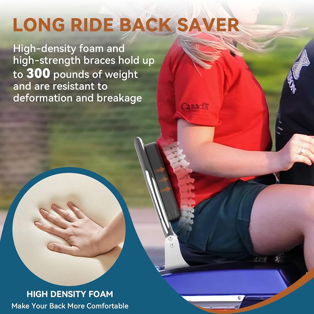 【Premium Comfort for Passengers】Extra-Wide EVA Foam Pad – Features an 11" x 8.5" cushioned backrest with upgrade PU leather, providing superior comfort and support for long rides