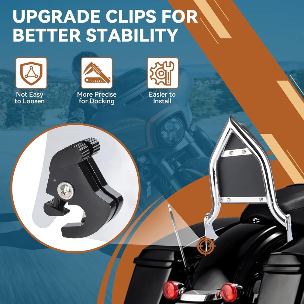 25" Detachable Sissy Bar Backrest for Harley Davidson Touring, Chrome Heavy Duty Steel Passenger Backrest Compatible with Street Glide/Road Glide/Road King/Electra Glide 2009-2024