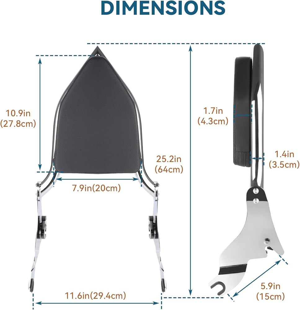 【Sleek Custom Chopper Style】Bold & Eye-Catching Design – Upgrades your bike's look with a 25" tall black sissy bar, giving your motorcycle a unique, aggressive stance that stands out on the road.
