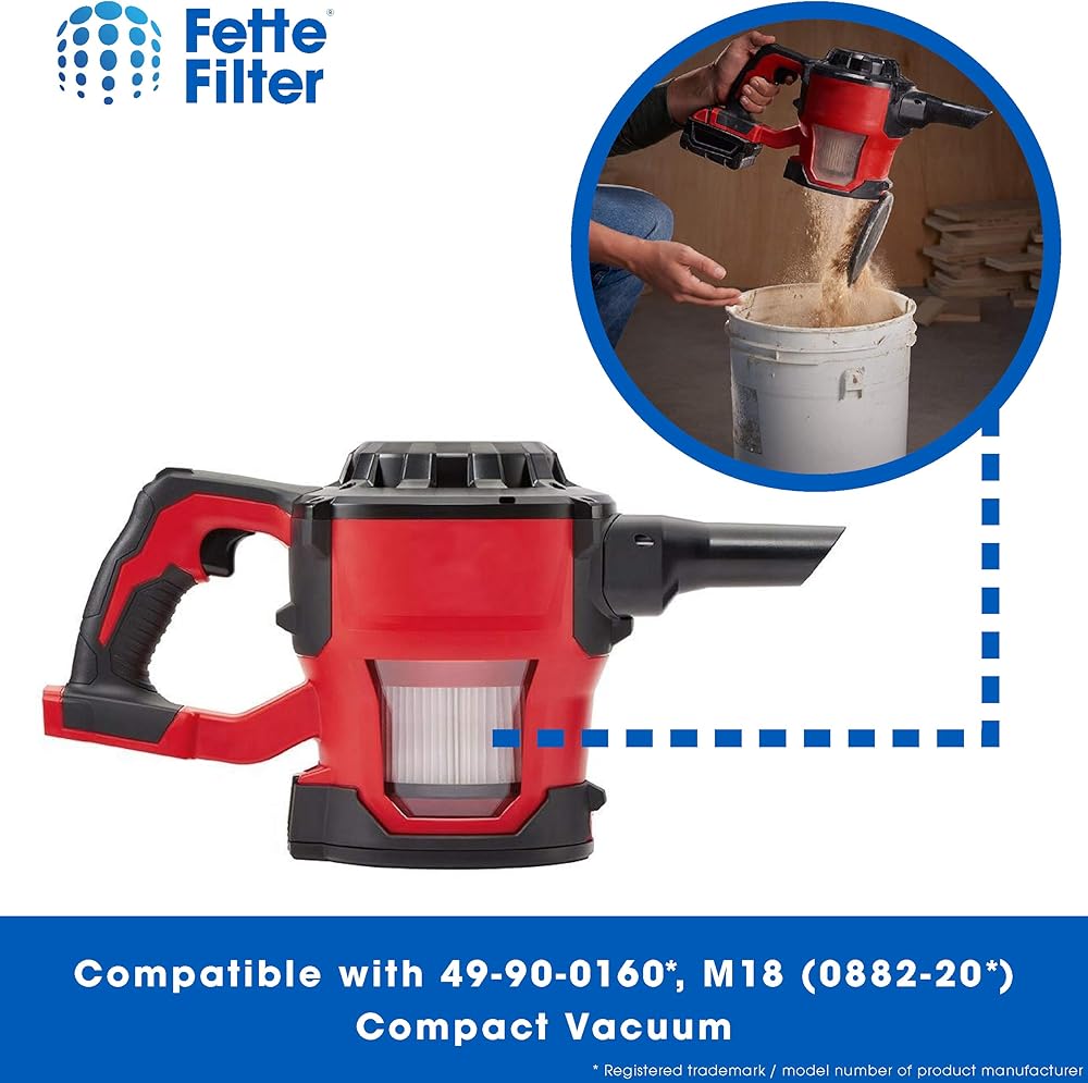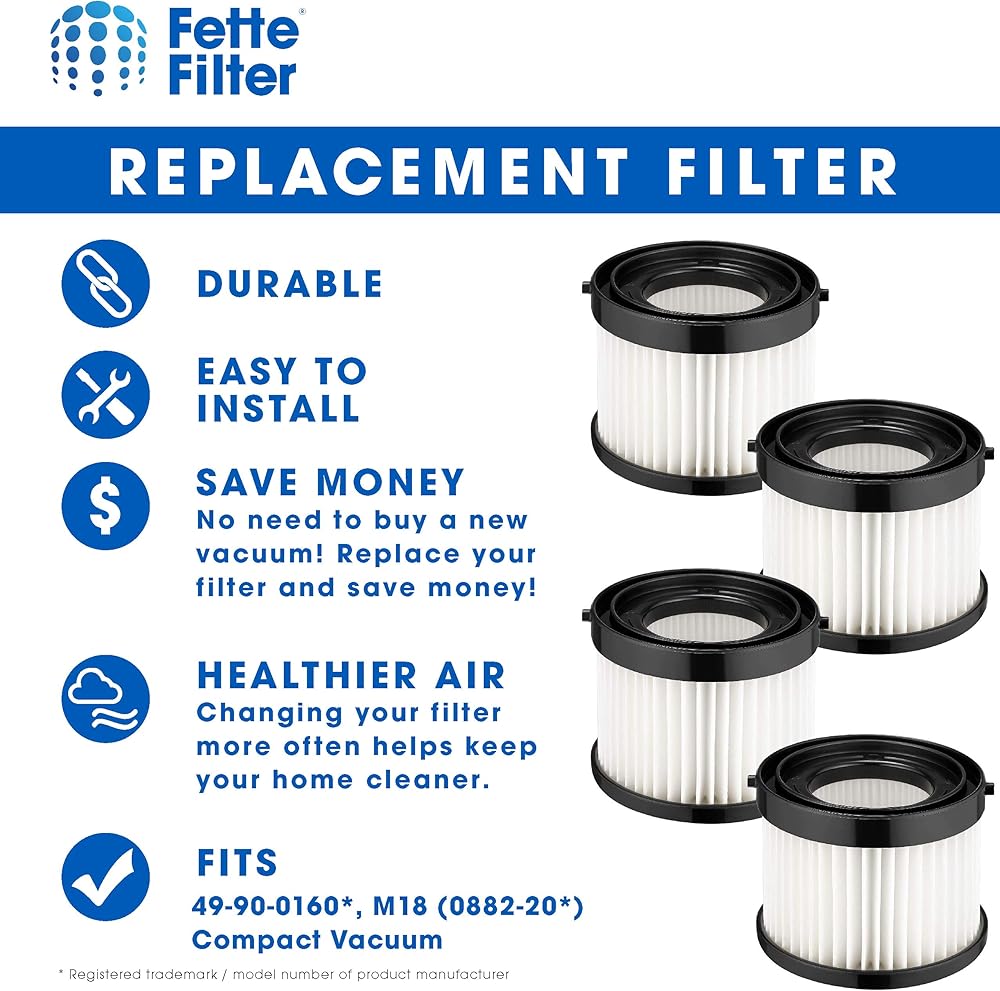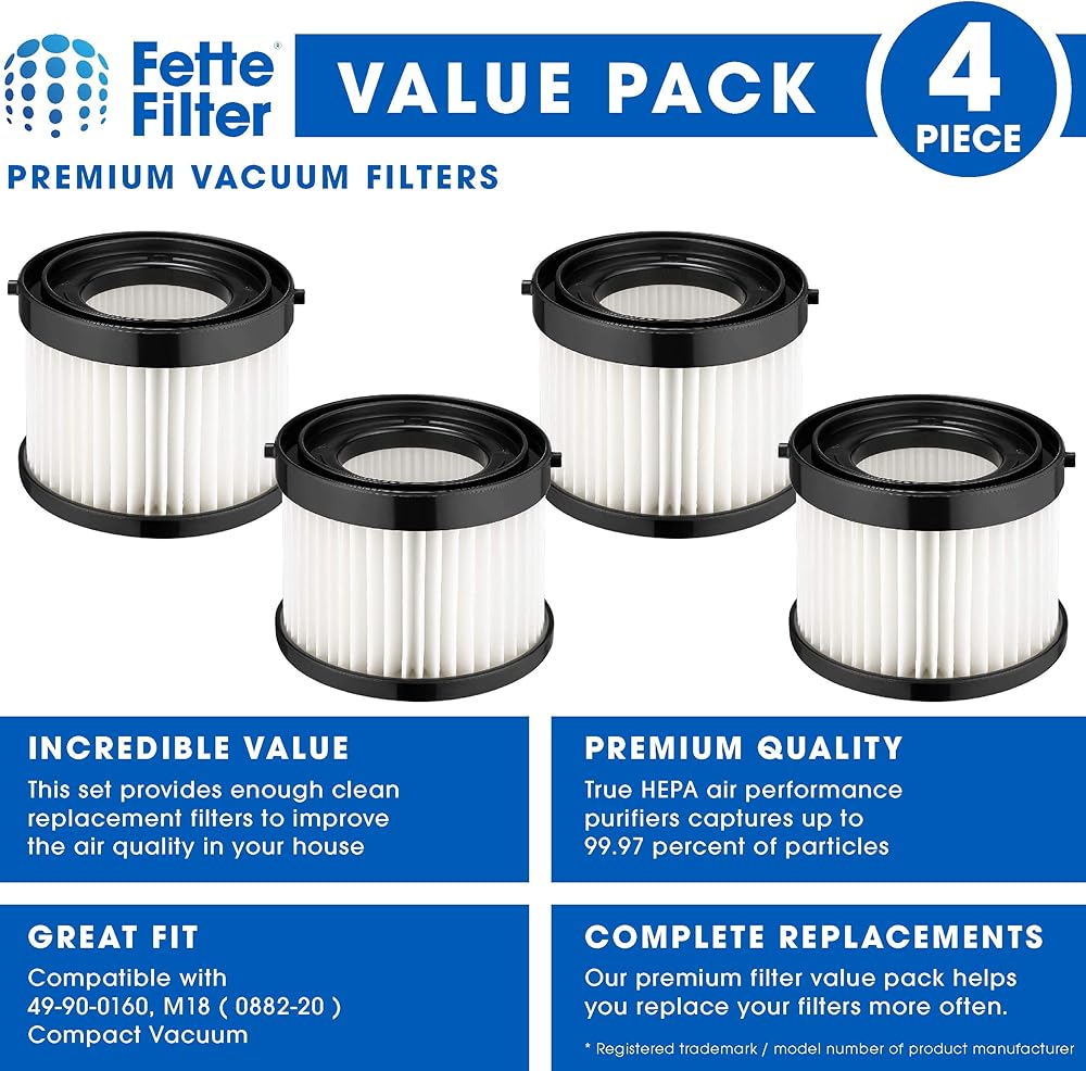Fette Filter - HEPA Dry Filter Compatible with Milwaukee Part Number 49-90-0160, 49-90-1951 for M18 Compact Vacuum Model Number 0882-20 Includes 4 Replacement Filters.
