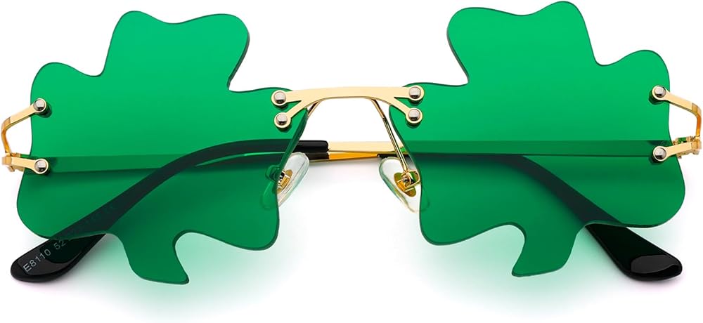 These rimless green sunglasses can block 101% harmful UVA, UVB, and UVC Rays that help protect your eyes from the sun's rays, our green shamrock sunglasses use non-polarized lenses, so whether you are indoors or outdoors, you can see the world around you as it is, which includes all kinds of colors that fade due to polarized lenses