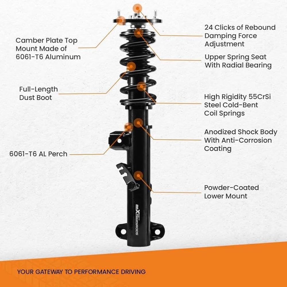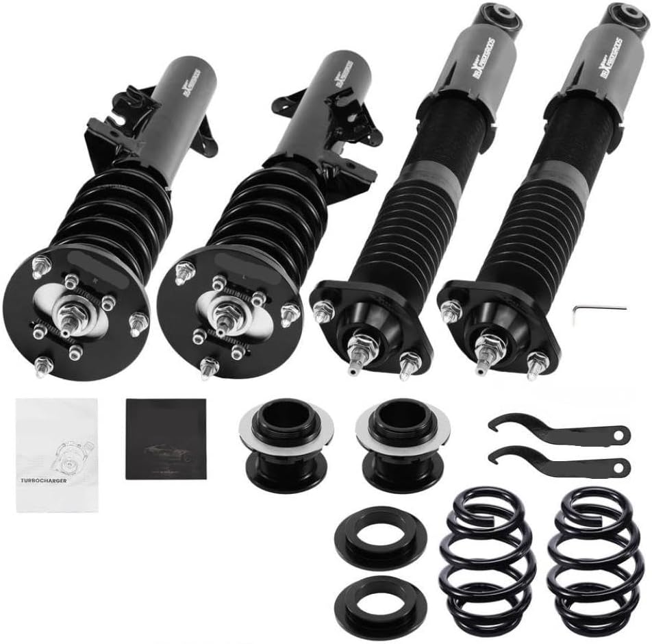 Coilovers 24 Way Damper Struts Kit for 3-Series E36 325 328 Suspension Struts Shock Absorber For 3 E36 Coupe 318is Adjustable coilover suspension kit designed for 3-Series E36 models. Features 24-way adjustable damping to allow fine tuning of ride comfort and handling performance. Includes shock absorbers and spring perches for full strut assembly replacement. Springs are linear rate for consistent response under various driving conditions. Threaded shock bodies enable ride height adjustment to suit individual preferences. Damping force can be increased or decreased by rotating the adjustment knob located at the bottom of each unit. Designed as a direct fit for specified vehicle models without need for modifications. Complete set includes all necessary components for installation on all four wheels. Provides improved cornering stability and reduced body roll compared to stock suspension. Suitable for daily driving and enthusiast use where enhanced road feedback is desired. This is a compatible aftermarket component. Brand names are cited solely to show which devices it works with.