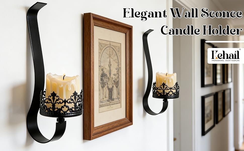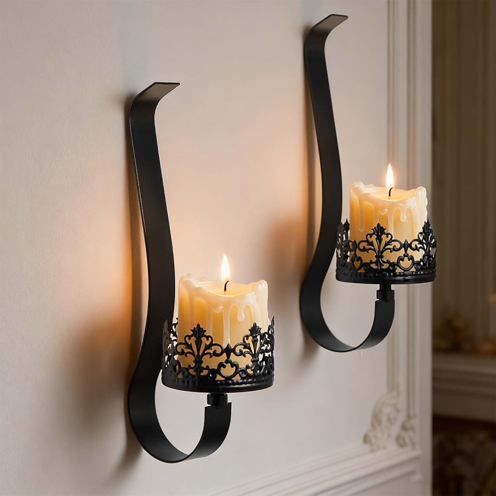 Set of 2 Matte Black Metal Sconces: Includes two minimalist yet elegant wall-mounted candle holders, finished in a durable matte black coating that resists rust and fits seamlessly into various home styles.