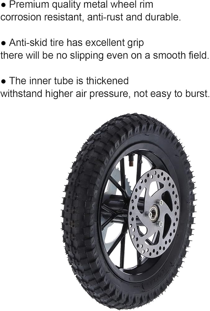 [PREMIUM QUALITY MATERIALS] Crafted with a highgrade metal wheel rim that is and rustproof ensuring longlasting durability even in harsh conditions. The robust construction guarantees reliable performance for your mini dirt bike.