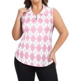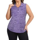Feature:The plus size sleeveless golf shirts design 1/4 zip up polo neck and design solid and floral pattern for different demand.