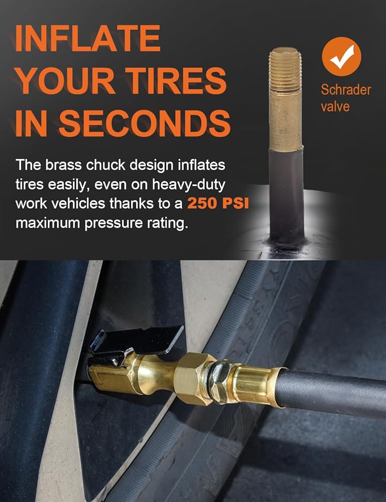 SAFELIFE 1/4" Closed Air Chuck with Lock on Clip is suitable for the inflation nozzles of most vehicles, there is a locking clip which can secure to seal the air chuck into place to a valve stem, so you don't need to make the chuck to valve stems, suitable for trucks, buses, cars, bicycles and motorcycles.
