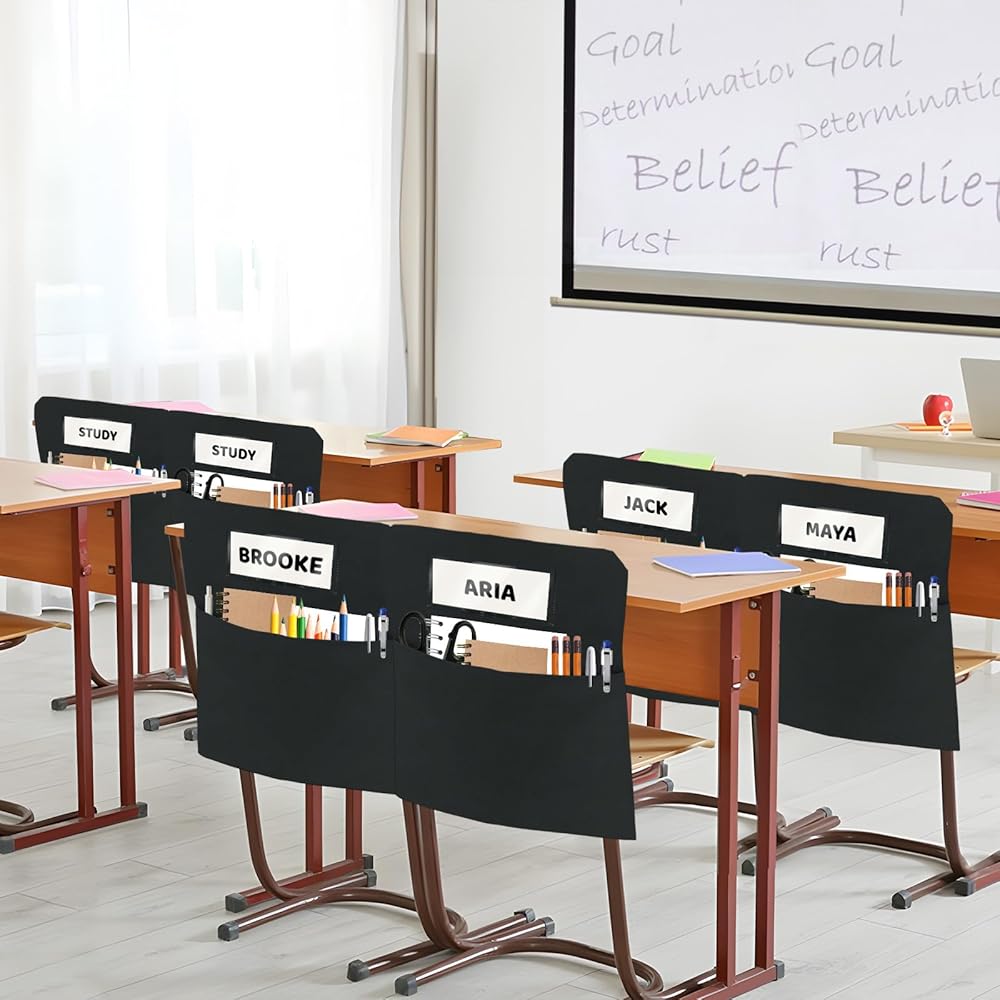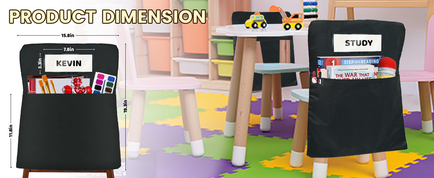 EXCLUSIVE NAME LABELING SYSTEM: Each chair pockets for classroom is equipped with a 7.8*3.3 inches transparent name slot, and comes with 24 pcs writable name cards, which is convenient for teachers, children or parents to easily mark exclusive seats. The transparent design is clear at a glance to avoid confusion, allowing students to quickly find their belongings, making classroom management more efficient!