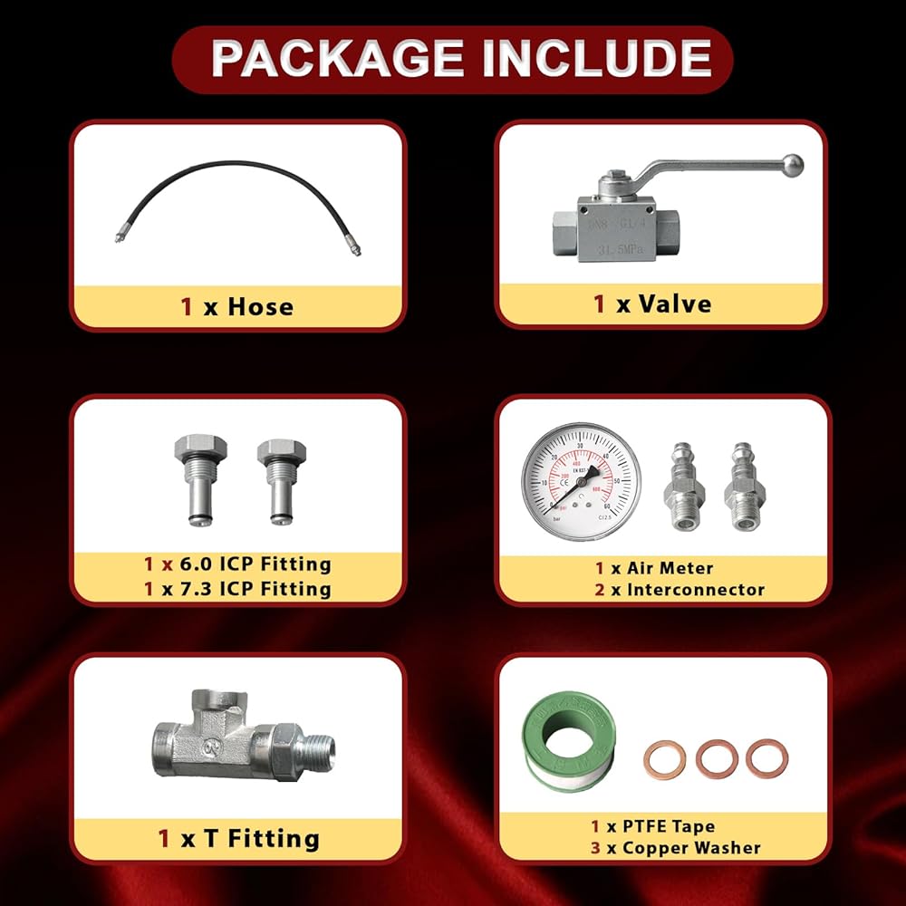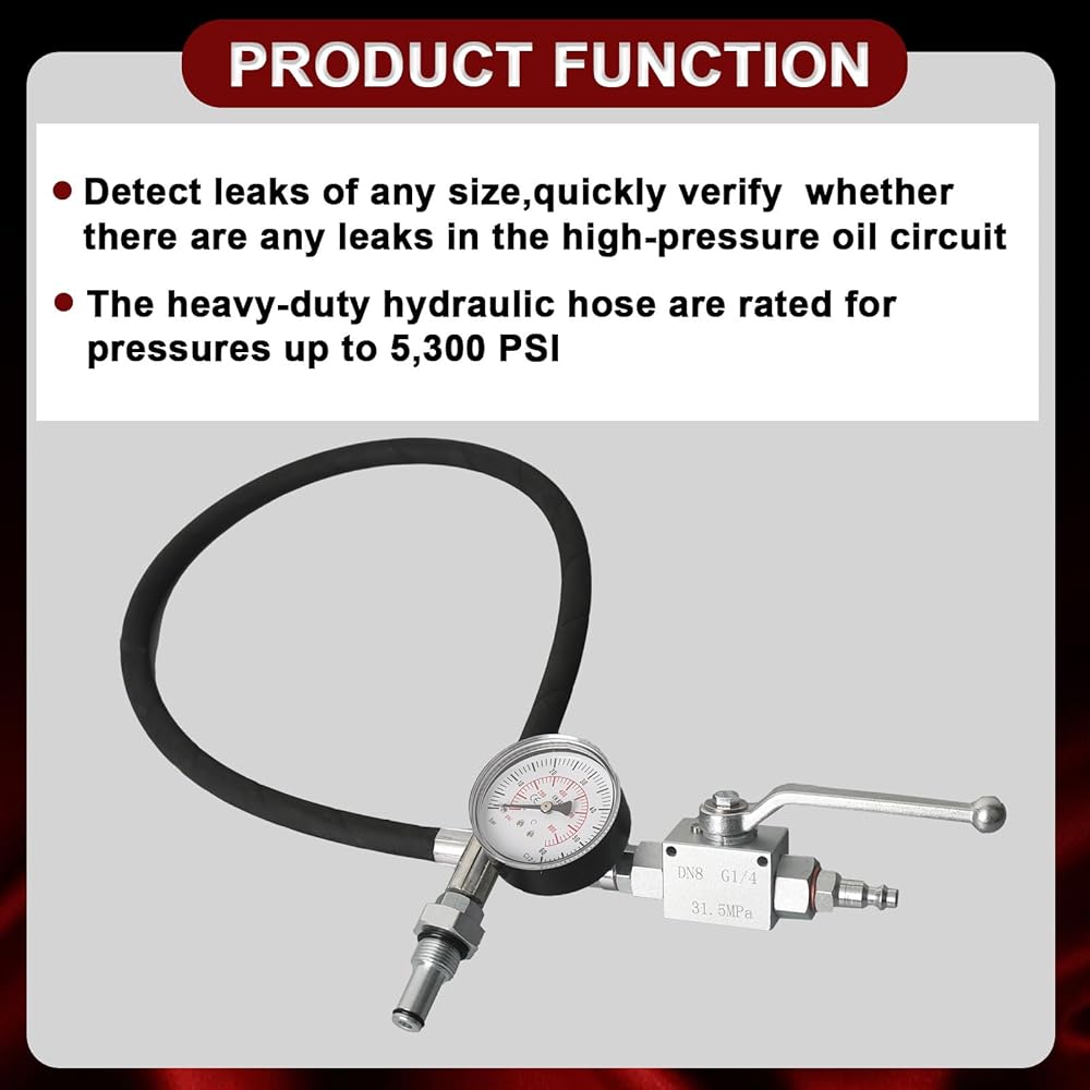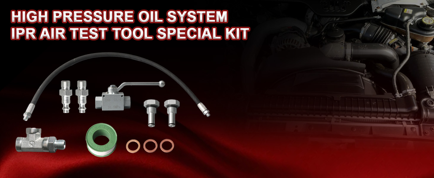 PRODUCT FUNCTION: The High Pressure Oil System IPR Air Test Tool Special Kit can detect leaks of any size, quickly verify whether there are any leaks in the high-pressure oil circuit. The heavy-duty hydraulic hose are rated for pressures up to 5,300 PSI