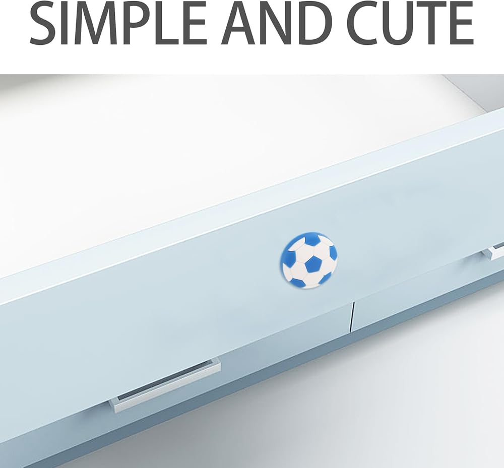 4pcs Silicone Cartoon Cabinet Drawer Pull Handles Room Soccer Blue White Soft Wardrobe Knobs Safe Furniture Handles for Nursery and Bedroom