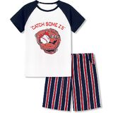 With impressively baseball and blue & brown striped design and the softly smooth and thick fabric that provides a cozy feel, this would be the must-have PJ set for your boys to wear!