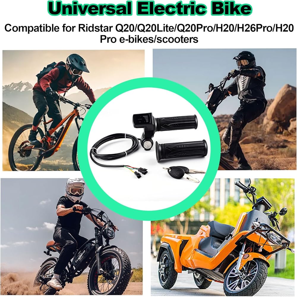 Ebike Full Twist Throttle Replacement for Ridstar Q20/Q20Lite/Q20Pro/H20/H26Pro/H20,48V, LCD Display with Key 2 Keys,Electric Bike Throttle Grips for Ebike Motorcycle Scooter Electric Bicycle
