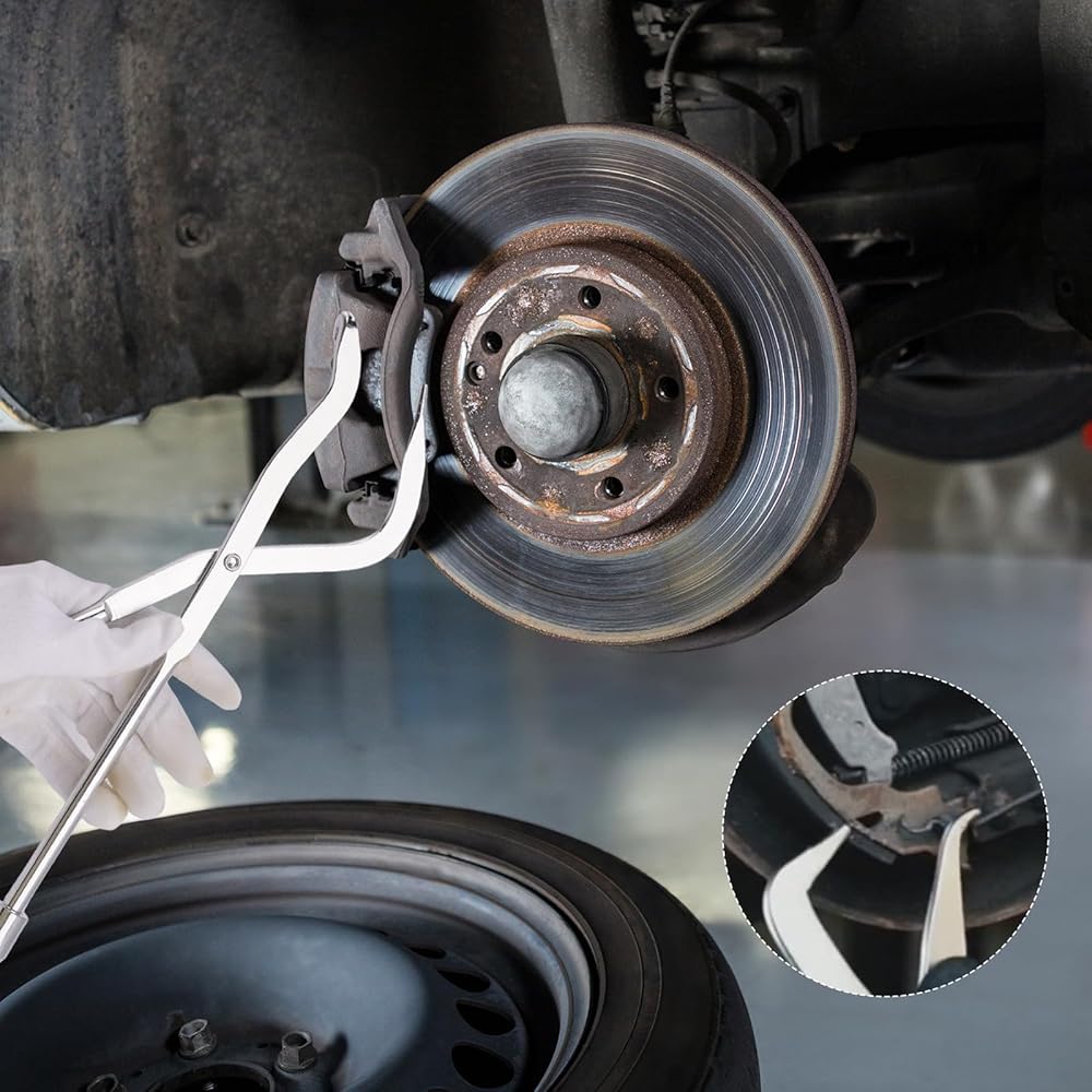 This drum brake spring tool is a handy assistant for auto repair! Built with high-strength materials, it can easily cope with the force requirements of brake spring removal and installation, precise clamping and stable operation, making the repair work more efficient.