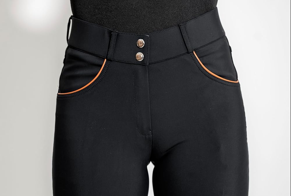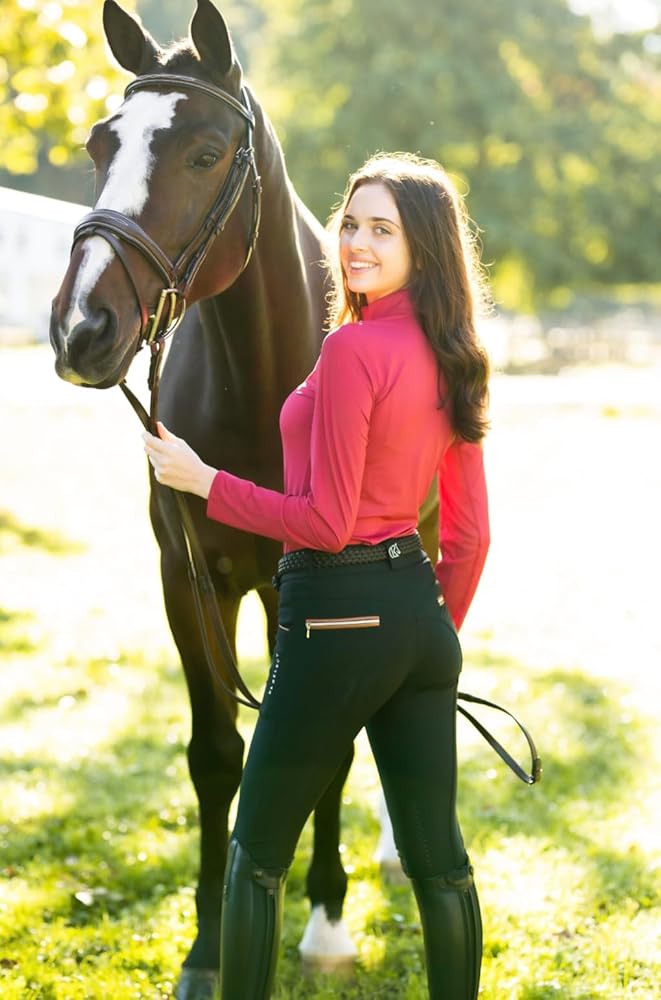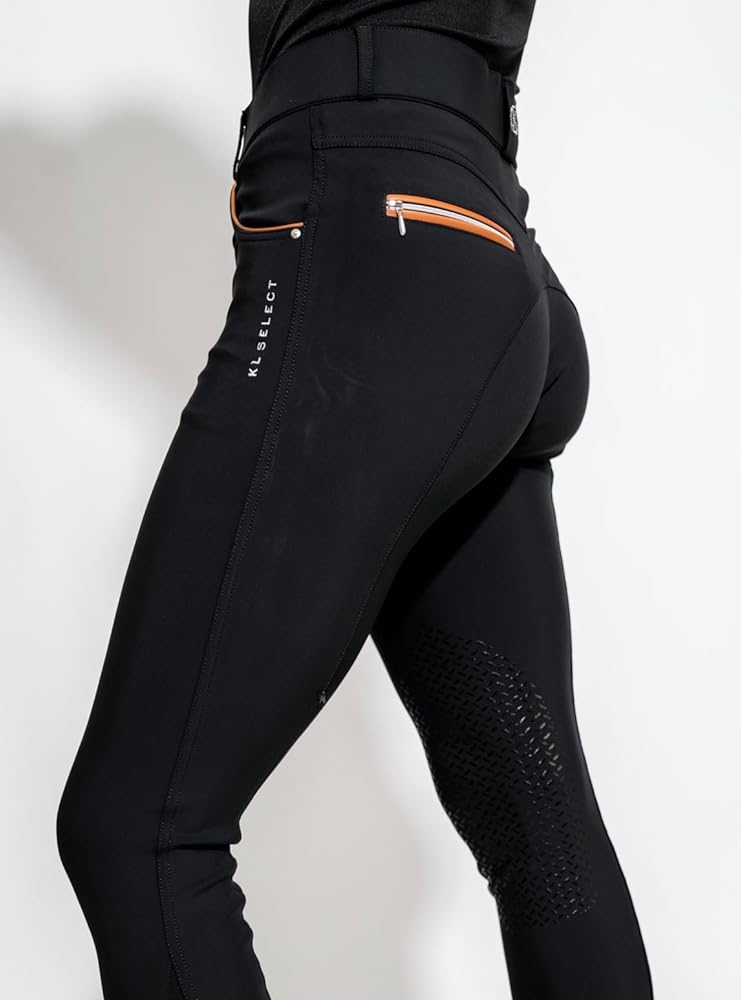 With their subtle sophisticated details and high-tech compression fabric, the KL Select Gabrielle Breech is destined to be your new favorite. The Gabrielle's feature high-tech compression fabric with 4-way stretch for optimal movability and a sleek figure-flattering look! The mid-weight material offers breathability, moisture absorption, and fast drying. Features include two front slide in pockets accented by silver grommets, two decorative back zipper pockets, contrasting piping, a silicone full seat, and Lycra sock bottoms.