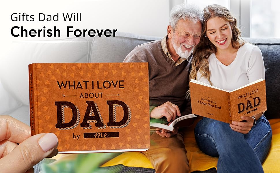 What I Love about Dad Book, Fill-in-the-Blank Leather Cover Book for Dad - Christmas Gifts for Dad from Daughter, Son, Kids - Birthday Gifts for Dad, Dad Birthday Gifts - Dad Christmas Gifts, Stocking Stuffer