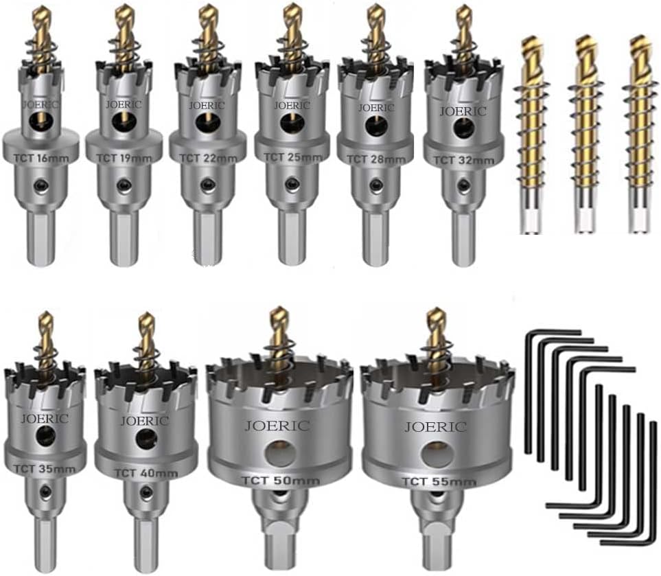 10 Piece Carbide Hole Saw Kit, Hole Cutter Set with 3 Extra Titanium-Plated Pilot Drill Bits,5/8"- 2-5/32" Inch Hole Cutter Set for Metal, Stainless Steel, Iron, Wood, Plastic